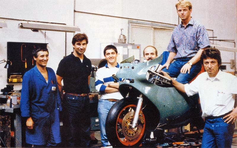 Il œuvra également pour MV Agusta avec les belles 750 et 1000 Type F 4. Le 4 cylindres MV à soupapes radiales fut conçu au départ par Ferrari et revu ensuite par Cagiva. La 1000 RC disposait de 212 hp avec le kit performance et atteignait 302 Km/h, mais avec 40900 €, son prix était élevé (une photo)..